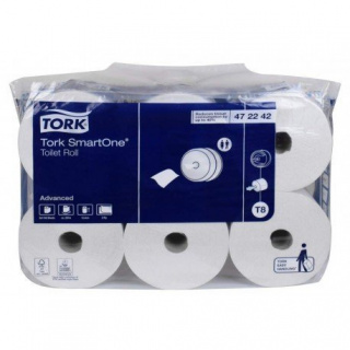 Sistemul Tork SmartOne Mini, cu rolă de hârtie igienică, garantează o distribuire igienică a hârtiei, bucată cu bucată. Asigură un consum de hârtie redus cu până la 40% în comparație cu dozatoarele tradiționale cu role jumbo standard. Rolele Tork SmartOne Mini au o capacitate mare și sunt ideale atât pentru toaletele cu trafic mediu și intens, cât și pentru cele cu trafic redus, în funcție de modelul de dozator Tork SmartOne Mini ales.